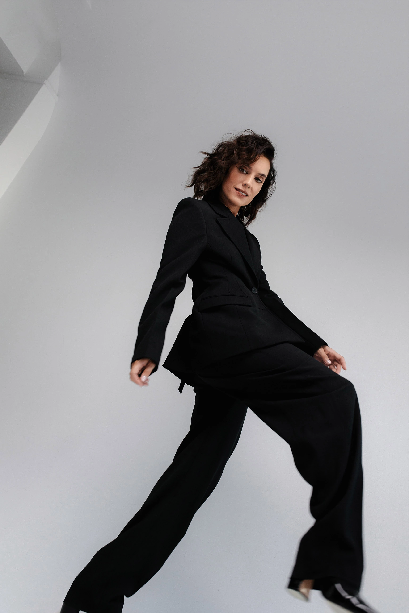 Pálmai Anna felnéz azokra a színészekre, akik mernek sérülékenyek és kiszolgáltatottak lenni egy szerepben, akik megmutatják a sebeiket - Blézer és nadrág: ZARA, Papucs: KAZAR