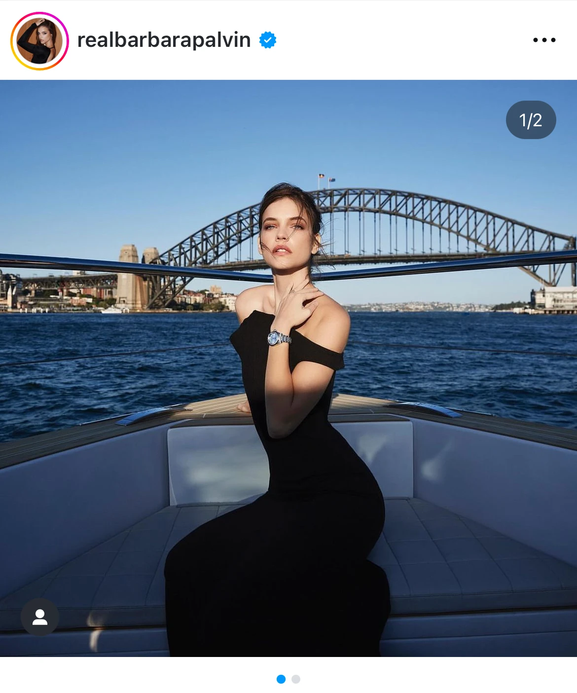Az első képen, melyet a sydney-i kikötőben készítettek, Palvin Barbara egy klasszikus fekete estélyiben pózol, háttérben a híres kikötői híd látképével. A vállakat szabadon hagyó fekete ruha kiemeli a modell kecses alakját, amit a minimalista ékszerek és egy elegáns karóra egészít ki. A modell frissessége és természetes szépsége minden apró részletben megmutatkozik. A második fotón szintén egy izgalmas összeállításban láthatjuk: egy fekete blézer és szoknya kombinációját választotta, amely letisztult és modern hatást kelt. A hullámokba rendezett haj és a minimalista smink kiemeli Barbi természetes szépségét.