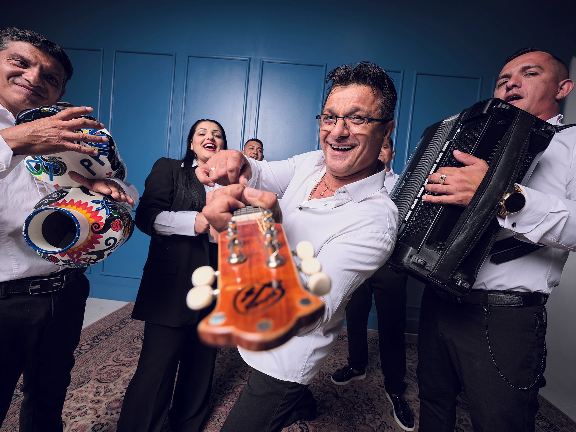 A Parno Graszt zenekar tagjai: Jakocska Rómeó (ének, gitár, tambura), Horváth Sándor (ének, kanál, tánc), Oláh Krisztián (harmonika, ének) Oláh Heléna (ének), Oláh József (ének, gitár, tambura), Németh István (szájbőgő, kanna), Oláh Viktor (ének) - nem szerepel a fotón/ Ruha C&A, H&M, MANGO, ZARA