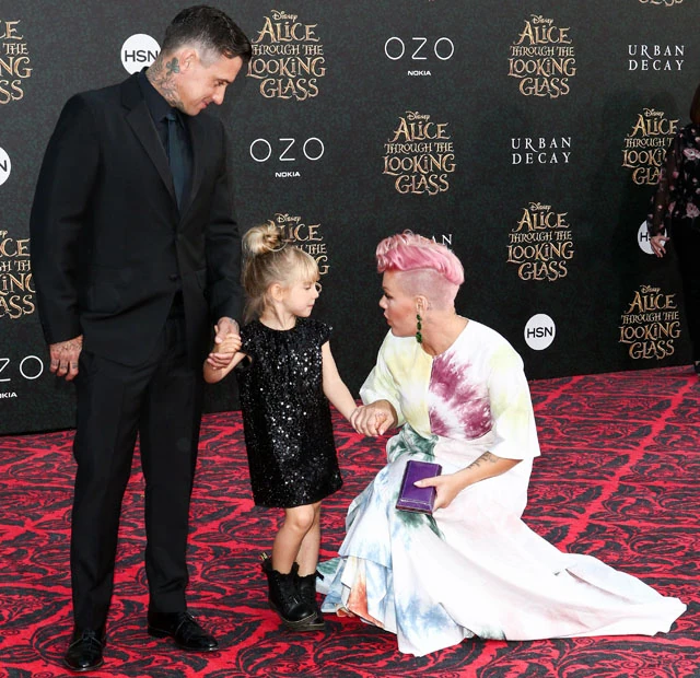 Pink, férjével és kislányával a vörös szőnyegen: