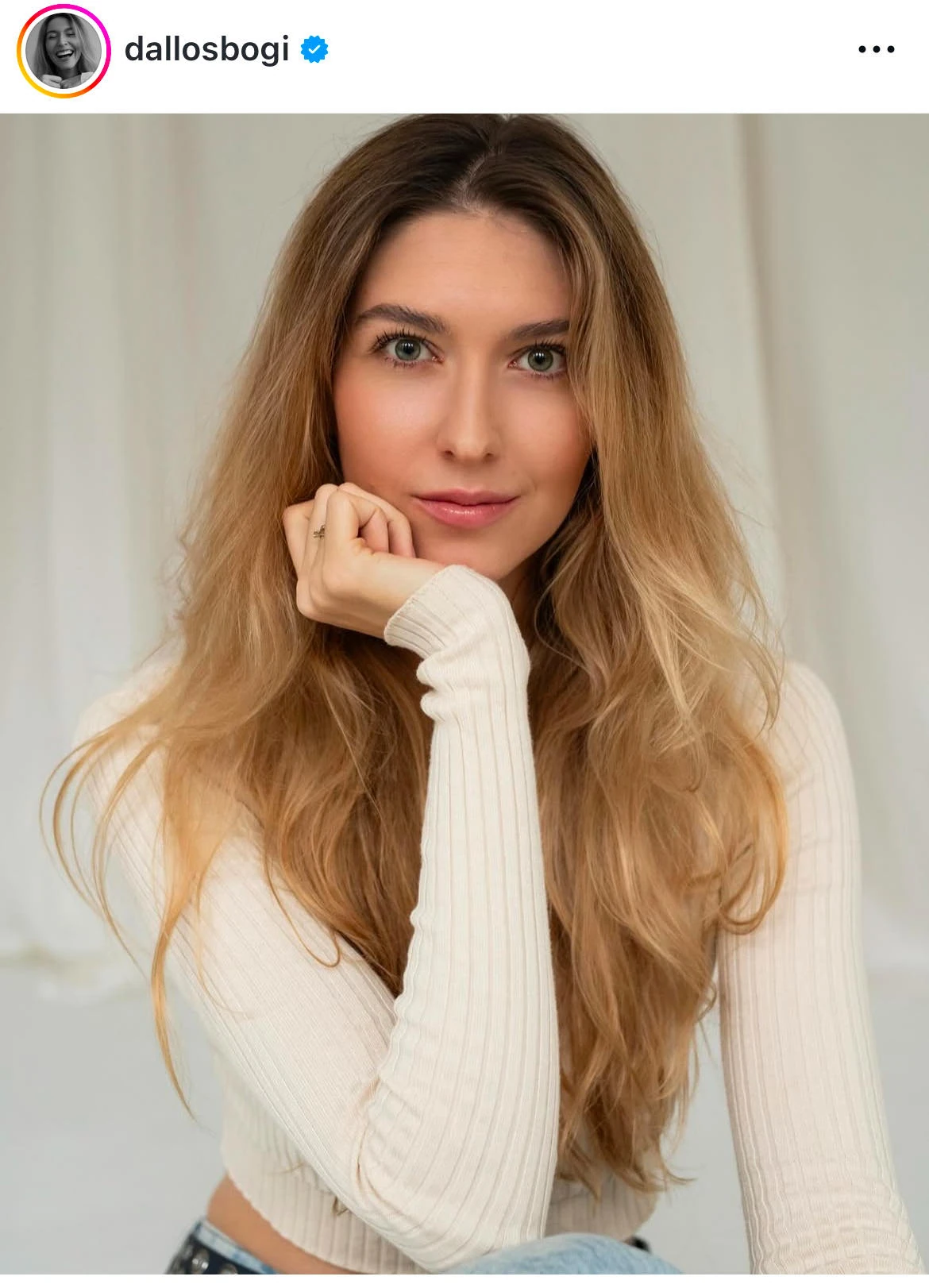 Puskás-Dallos Bogi új fotót osztott meg az Instagramon, a képet látva követői bókokkal árasztották el, és nem is csoda, hiszen az énekesnő tündököl a képen. A fényképen egyszerű bézs felsőben és természetesen hatású sminkben láthatjuk Bogit, akinek hajkoronáját bárki megirigyelné. A fotó abból a sorozatból származik, melyet Puskás-Dallos Bogi és férje, Puskás Peti közös előadásának apropóján készítettek róluk.