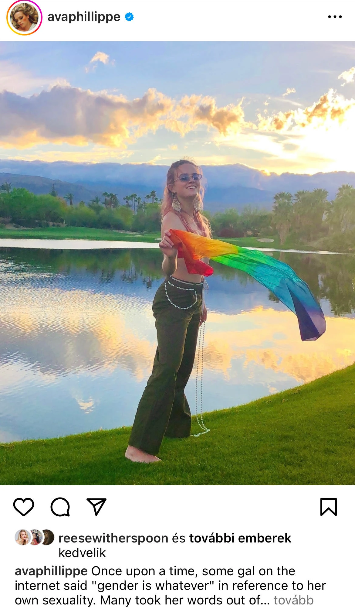 Június 1-jén, szombaton Reese Witherspoon és Ryan Phillippe lánya a Pride hónap első napját egy Instagram-bejegyzéssel ünnepelte. Ha végre sikerült túltennünk magunkat Ava és Reese Witherspoon hasonlóságán, érdemes a bejegyzés üzenetével is foglalkoznunk kicsit.