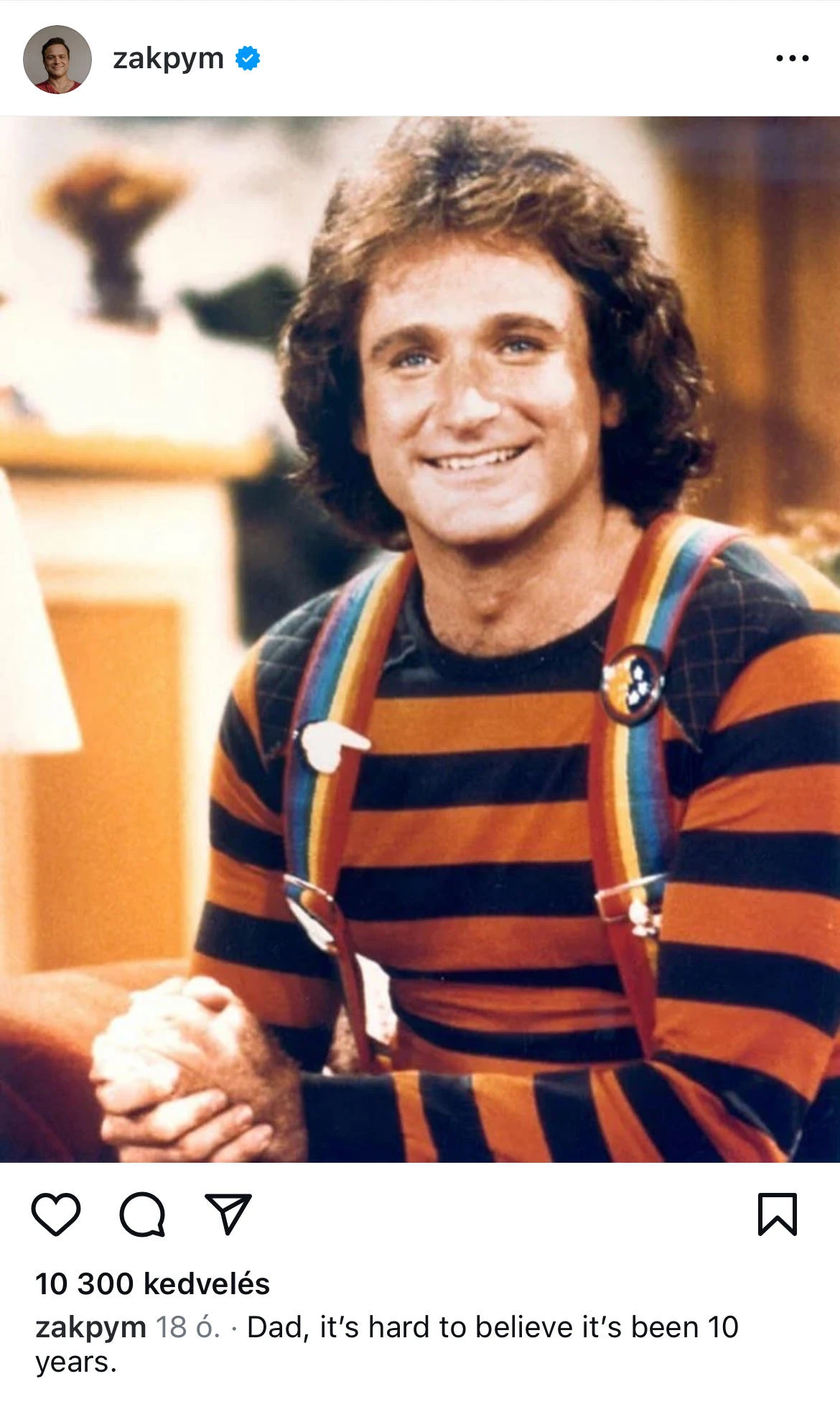 Tegnap volt tíz éve, hogy a Mrs. Doubtfire, a Jó reggelt, Vietnám!, az Ébredések és a Holt költők társasága sztárja, Robin Williams elhunyt. A komikus halálának évfordulójáról egykori pályatársai mellett fia, Zak is megemlékezett a közösségi médiában.