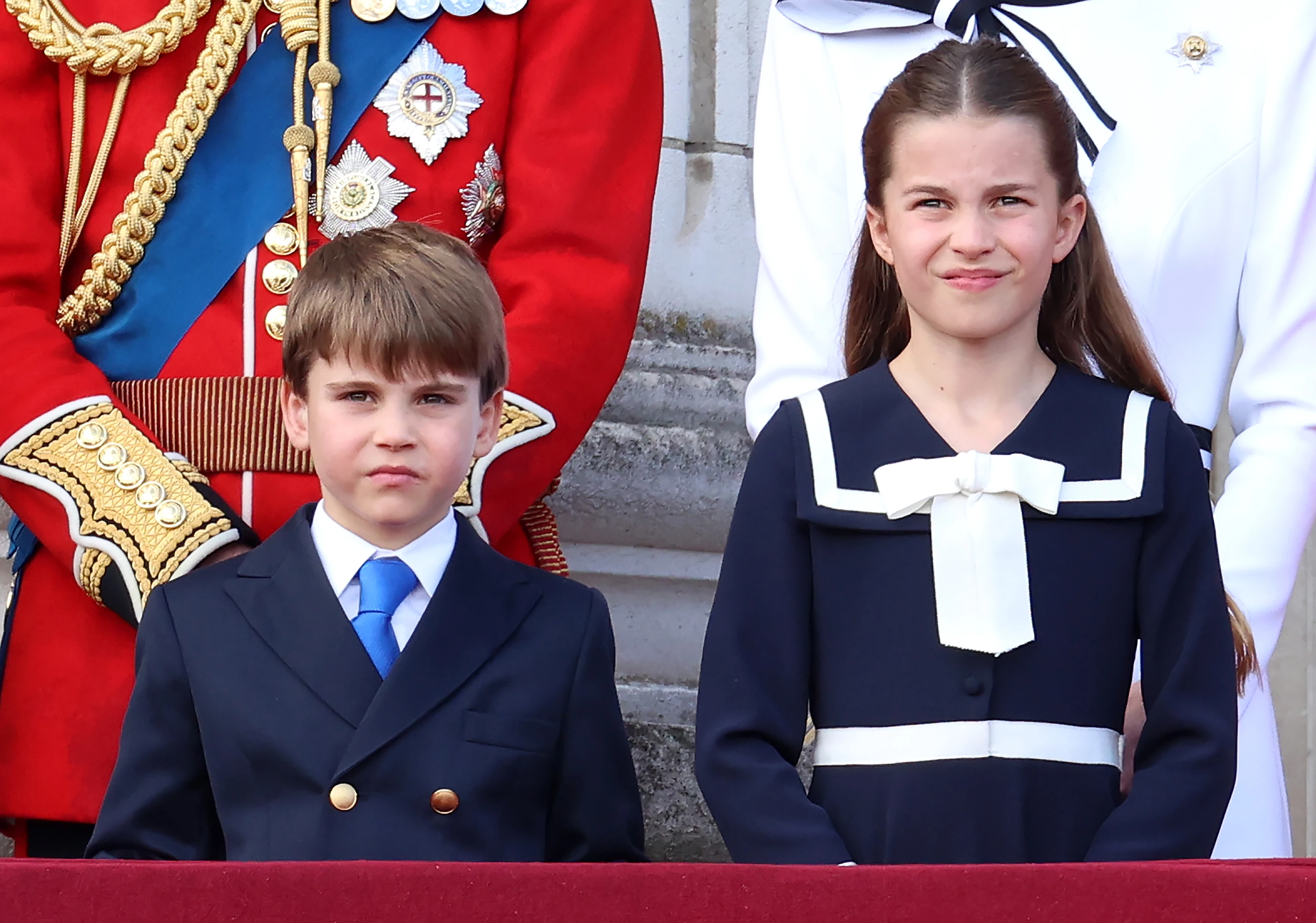 Természetesen ahogy Károly király koronázásán, úgy most is Lajos herceg lopta el a show-t grimaszaival és izgága megnyilvánulásaival. Arra is emlékezhetünk, hogy egy ponton, a himnusz elhangzása közben a kilencéves Sarolta hercegnő megpróbálta csitítani öccsét. Judi James testbeszédszakértő a Mirrornak elmondta: „Amikor Katalin és három gyermeke az erkélyről figyelte a parádét, Katalin hátul állt, miközben Sarolta büszkén mosolygott lefelé, sőt, úgy tűnt, még suttogott is Lajosnak, hogy biztos legyen benne, ő is feszesen áll, miközben a himnuszt játsszák.”