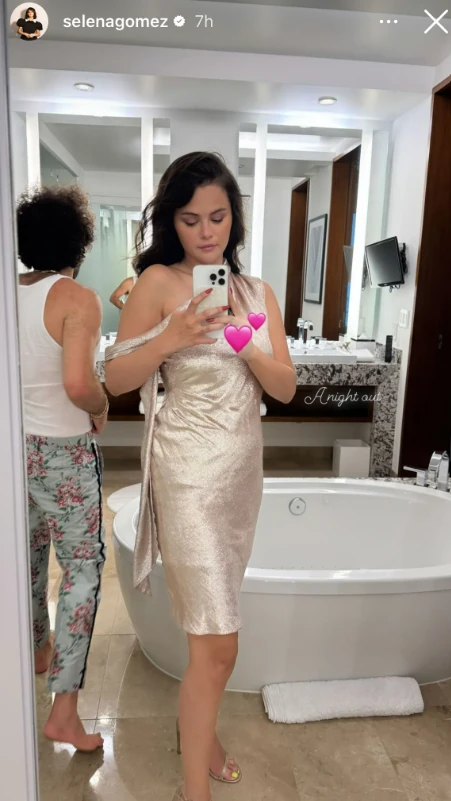 Augusztus 8-án Selena Gomez egy fürdőszobai tükörszelfit posztolt Instagram-sztorijában, amint egy álomszép csillogó ruhában pózol. Beszédes, hogy bal kézfejére a fotón két szívecske emojit tett, amelyek közvetlenül a gyűrűsujja alá és fölé kerültek. A követők szerint ez egyáltalán nem véletlen: úgy gondolják, hogy az apró részlet egy finom utalás arra, hogy a két fiatal a közeljövőben készül összekötni az életét.