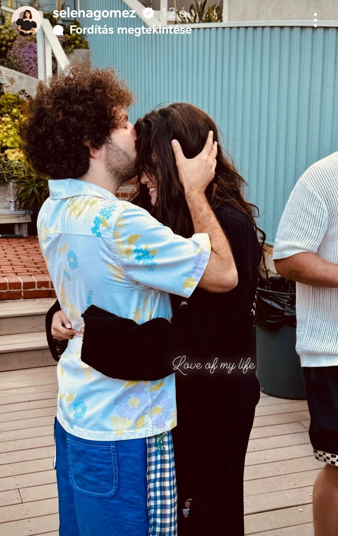 Az Instagramra feltöltött fotók között találunk egy kedves, összebújós fotót is Benny Blancóval. Az énekesnő átöleli párját, miközben ő csókot nyom a homlokára. „Életem szerelme” - írta Selena Gomez a megható képhez.