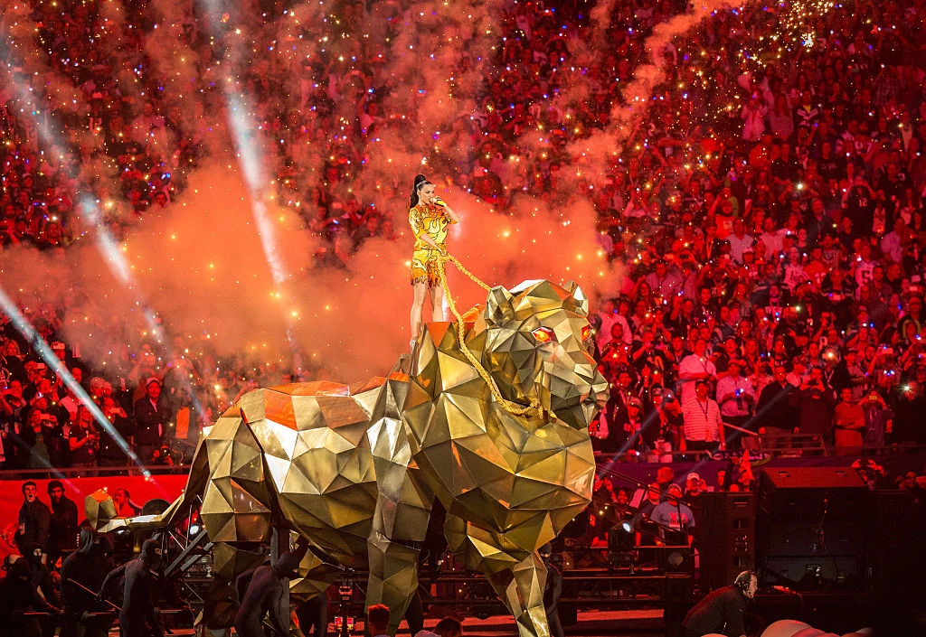 Szorosan az ötödik helyen zárt Katy Perry előadása, akihez 2015-ben Missy Elliott és Lenny Kravitz csatlakozott. A YouTube-on 75 millió megtekintéssel az ő előadásuk 130 937 eurós becsült bevételre tettek szert. Érdekesség, hogy a televízióban ez az előadás volt a legnézettebb, egészen pontosan 118,5 millió nézővel.