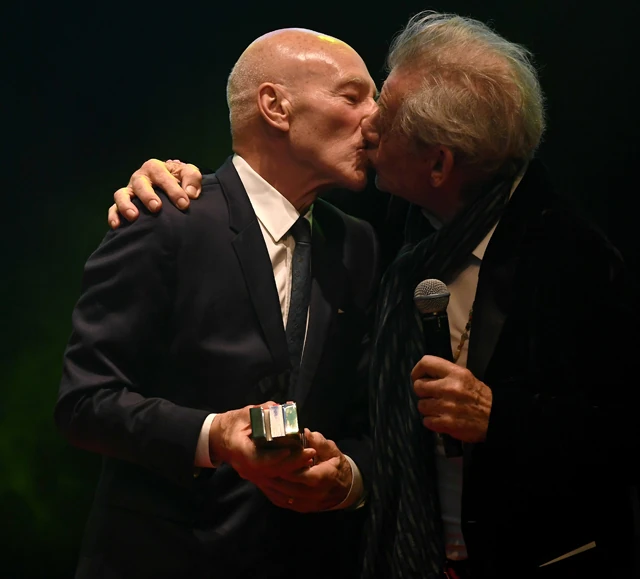 Sir Ian McKellen és Sir Patrick Stewart vörös szőnyeges csókcsatáját csak imádni lehet