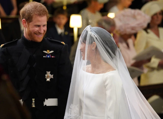 De a legmeghatóbb talán az a pillanat volt, amikor Harry meglátta menyasszonyát, gyönyörű ruhájában, majd annyit mondott neki: