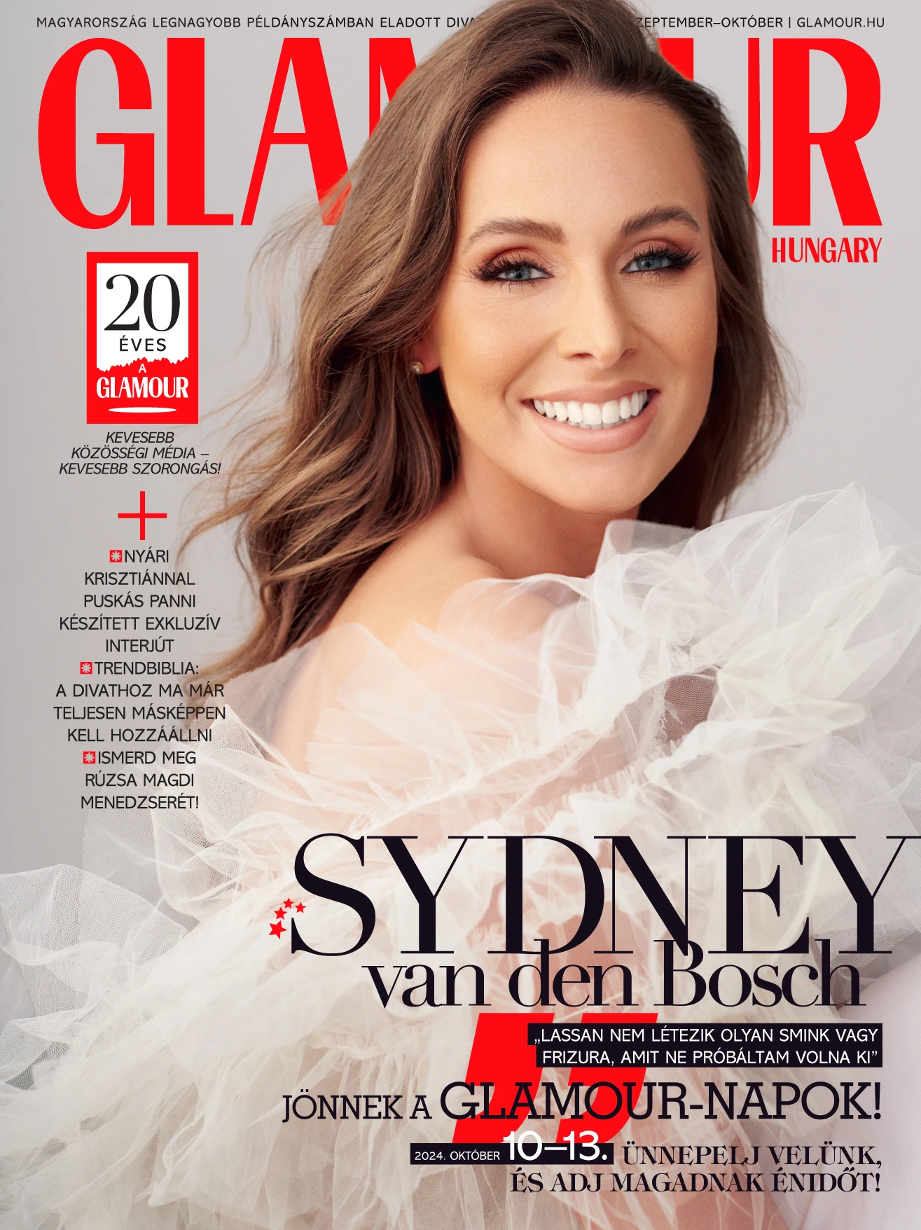 Sugárzik a boldogságtól Sydney van den Bosch, aki hamarosan kimondja a boldogító igent. A szeptember-októberi magazin címlapsztárja gyönyörű menyasszonyként tündököl a magazinban. Elmondása szerint az útja nem volt mindig egyszerű, de elégedett azzal, ahol most tart, és magabiztosan várja, milyen kihívásokat tartogat még számára az élet.