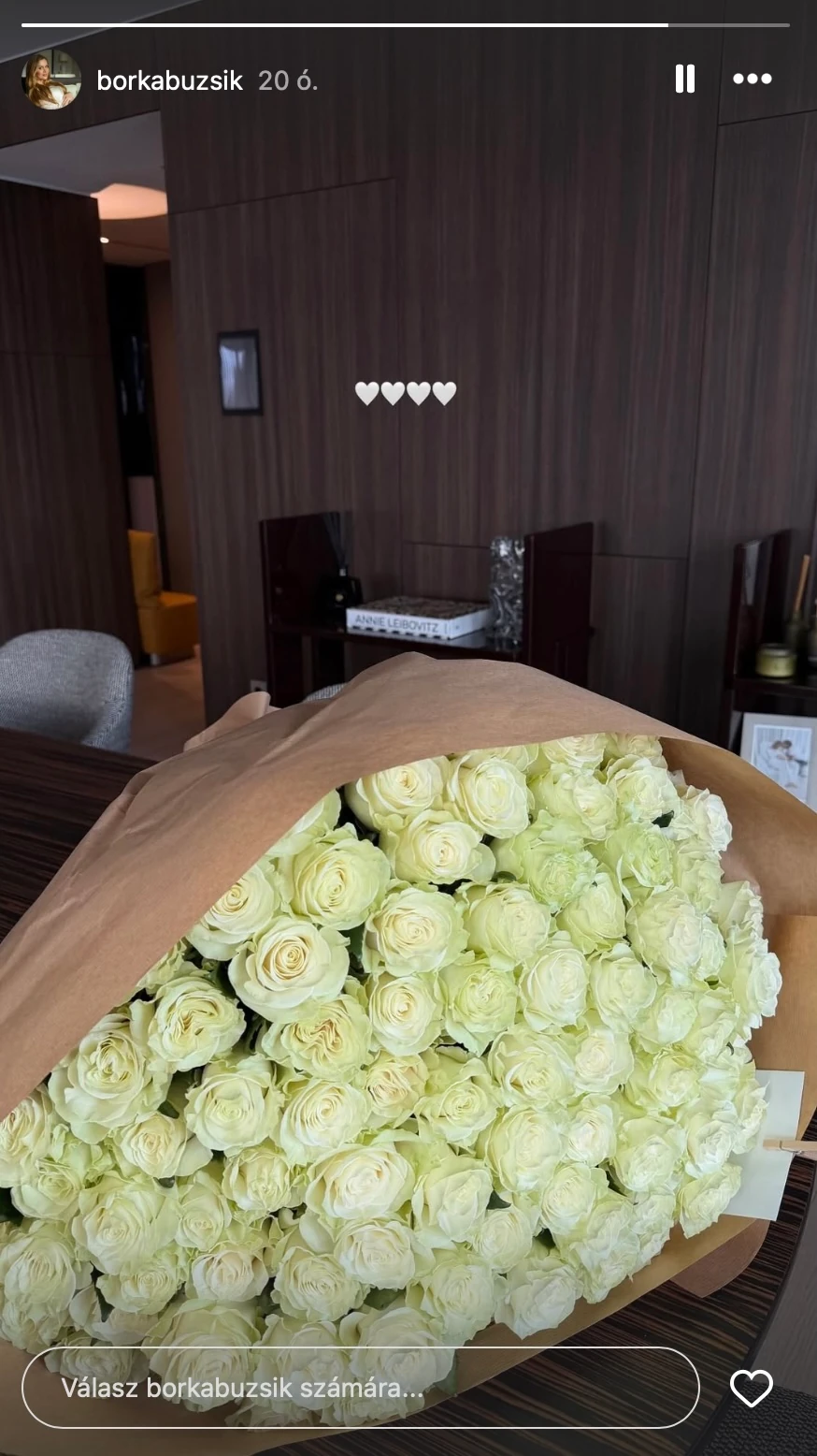 Buzsik Borka egy hatalmas csokor fehér rózsát kapott férjétől, Szoboszlai Dominik sztárfocistától