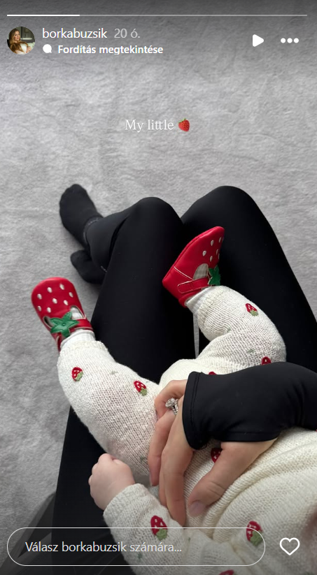 Most Borka egy olyan képet osztott meg, amin a csöppség outfitje a lényeg: a pici ugyanis tetőtől talpig epres szettben ül az anyukája ölében. Nemcsak a ruhácskáját díszítik eprek, de piros cipellőjét is a gyümölcsről mintázták. Már most olyan stílusos, mint az édesanyja!
