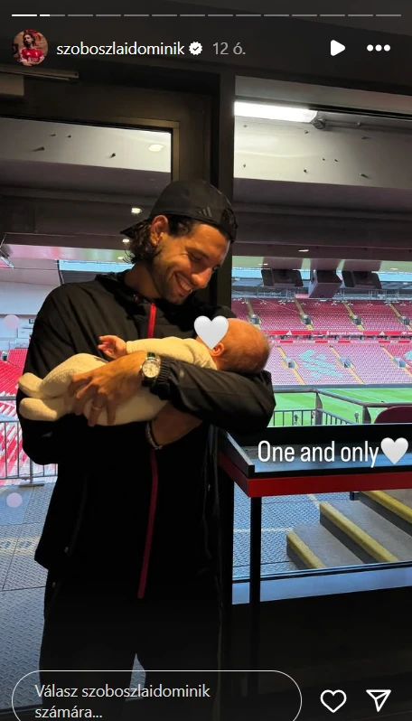 Szoboszlai Dominik és gyönyörű felesége, Buzsik Borka nyár végén jelentették be, hogy megszületett az első közös gyermekük. Az első anya-lánya fotó láttán már elolvadtunk, most pedig a sztárfocistát láthatjuk apa szerepben: a focipálya lelátóján tartja a kezében a kislányát.