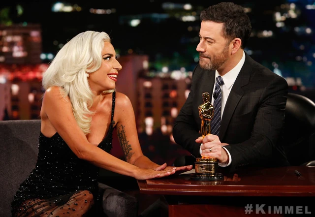 Lady Gaga Jimmy Kimmel műsorának volt a vendége, ahova még vicces módon az Oscar-díját is magával vitte. Természetesen a műsorvezetővel beszélgetésük alatt kitértek az állítólagos szerelemre is közte és Bradley Cooper között. Ha Lady Gaga szemforgató reakciója nem lett volna elég, akkor még ki is mondta, hogy nemhogy nincs közük semmi, hanem az egész direkt így volt megrendezve, ráadásul Cooper által. Hetekig próbáltak, minden egyes mozdulatnak, pillantásnak oka volt, ahogy annak is, hogyan nézett ki a világítás, a kamerabeállás, vagy hogy a színpadra a közönség soraiból léptek fel. A popsztár azt is hozzátette, hogy ez egy szerelmesdal, ahogy a film is egy szerelmesfilm, és nyilván színjátszás volt az egész jelenet köztük, amire persze rásegített a remek kémia a két színész között.