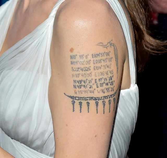 Angelina Jolie közismerten sok-sok tetoválással büszkélkedik. A bal vállán mind a hat gyermekének a születési helyének koordinátái vannak felvarrva. Hogy miért van mégis hét sor? Nos, a hetedik Brad Pitt születési helyét jelöli...