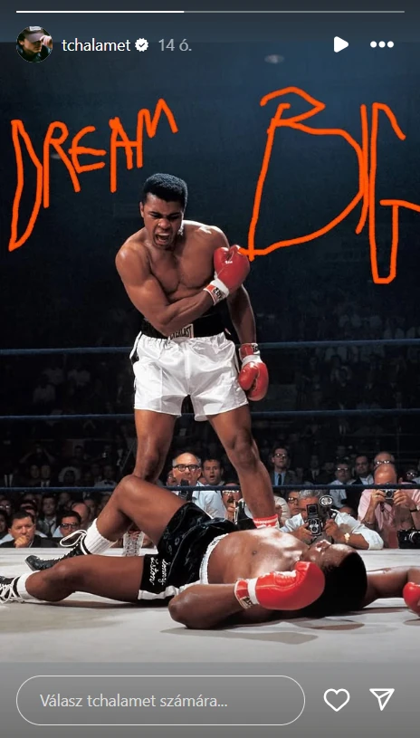 A reality-sztár az Instagramon rengeteg szülinapi üzenetet kapott a családjától és a barátaitól, de a párja nem róla, hanem valami egészen másról posztolt. Timothée egy bokszmeccsről osztott meg egy fotót, amin Mohammed Ali győzedelmeskedett, és a képhez ezt írta: „Álmodj nagyot”.