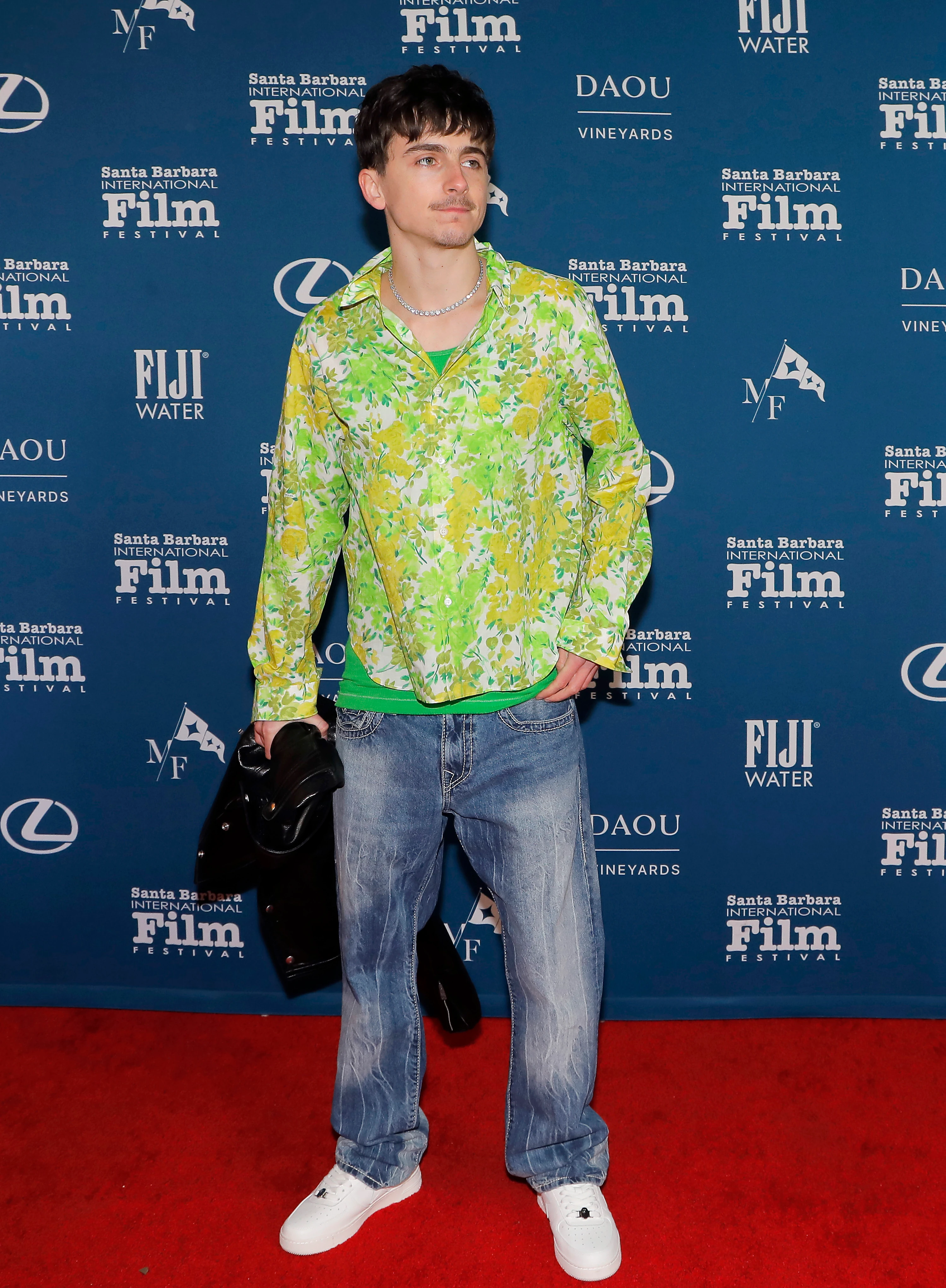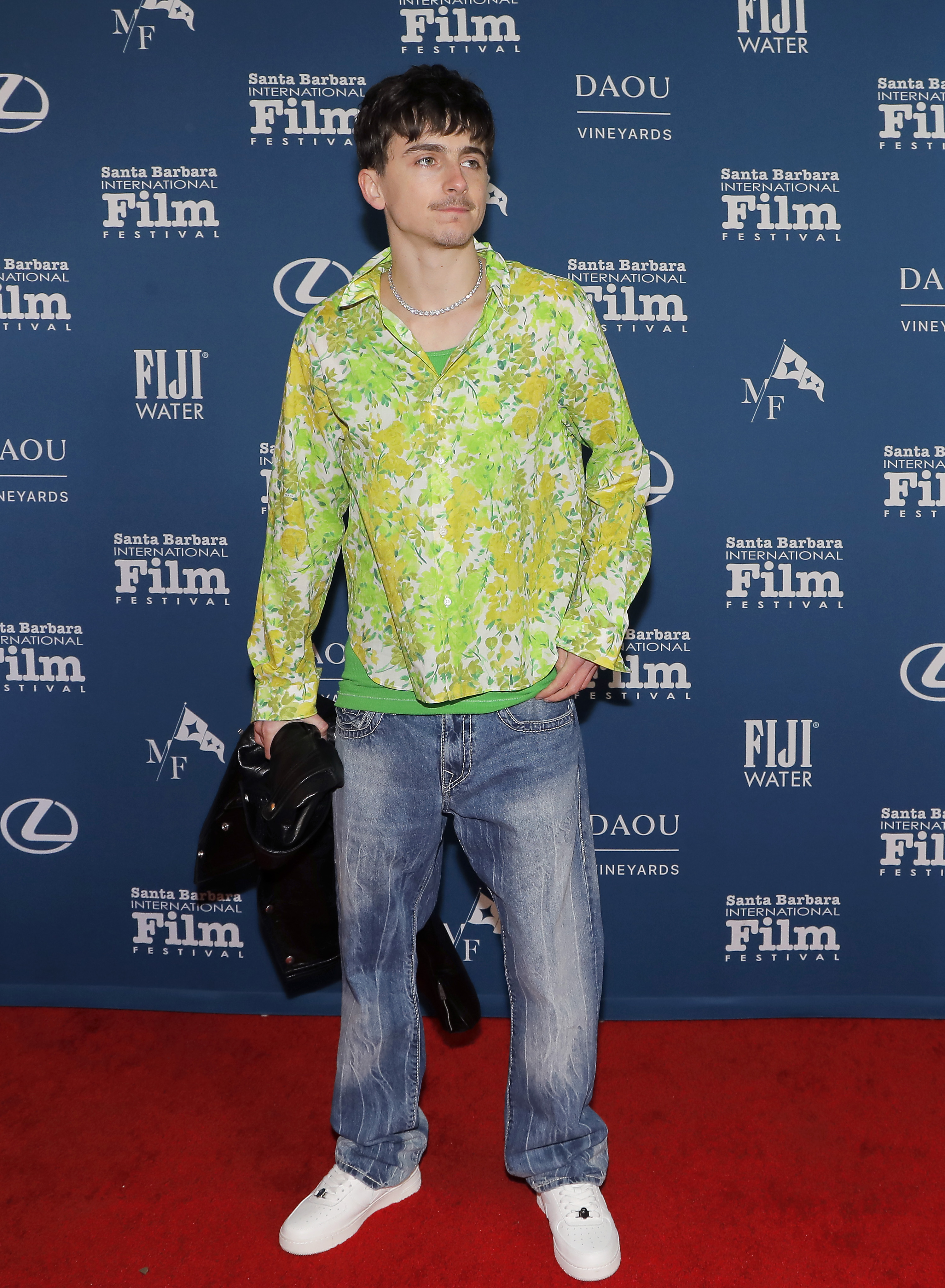 Timothée Chalamet oldalt rövidre vágott pixie frizurával jelent meg Kaliforniában, a Santa Barbara Nemzetközi Filmfesztiválon, és homlokába omló frufrut is vágatott. Az új hajstílust egy ugyancsak figyelemfelkeltő szettel egészítette ki, limezöld színű ingjét absztrakt virágmintázat díszítette, alatta világoszöld trikót viselt, nyakában pedig ezüstlánc lógott. A szett nekünk a kétezres éveket idézi, ami nem csoda, hiszen a divat körforgása örök, ismét trendivé válnak a néhány évtizeddel ezelőtti darabok.