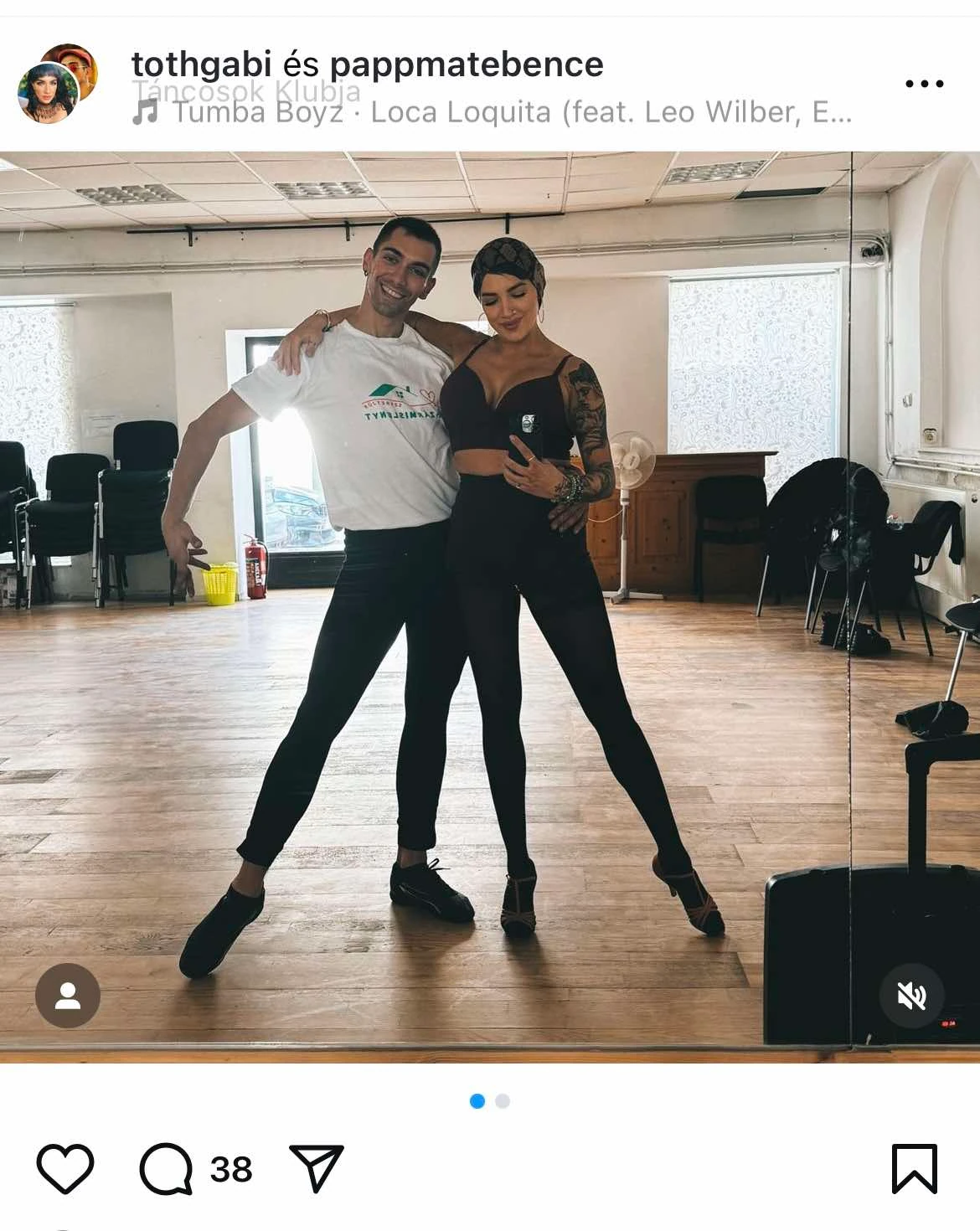 - állt az egyik legtöbb kedvelést kapott kommentben. Ezzel a hozzászóló természetesen Papp Máté Bence karrierjére utalt, amit a férfi nem a standard és latin, hanem a néptánc műfajában épített fel. Mások is fogalmaztak meg iróniával teli kommenteket, mint például „Én nem is tudtam, hogy a párod versenytáncos. Én azt hittem, hogy néptáncos.” Tóth Gabi azonban egy fotóval oszlatta el a kételyeket és némította el kritikusait. A friss fényképen egy próbateremben pózolnak kedvesével, az énekesnő lábán pedig latin táncokhoz használt cipő van.