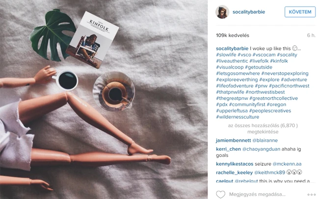 A nagyon is trendkövető szelfizgetés azonban annyira jól sikerült, hogy elkezdték komolyan venni a tréfát. A lány már egy ideje érezte, hogy az eredeti szándékával ellentétben nem nevetségessé teszi az Instagram-életérzést, hanem éppen annak reklámarca lesz. Ezért aztán úgy döntött, megszünteti a Socality Barbie-t, aki 22 hónap alatt sajátos karriert futott be. Béke poraira!