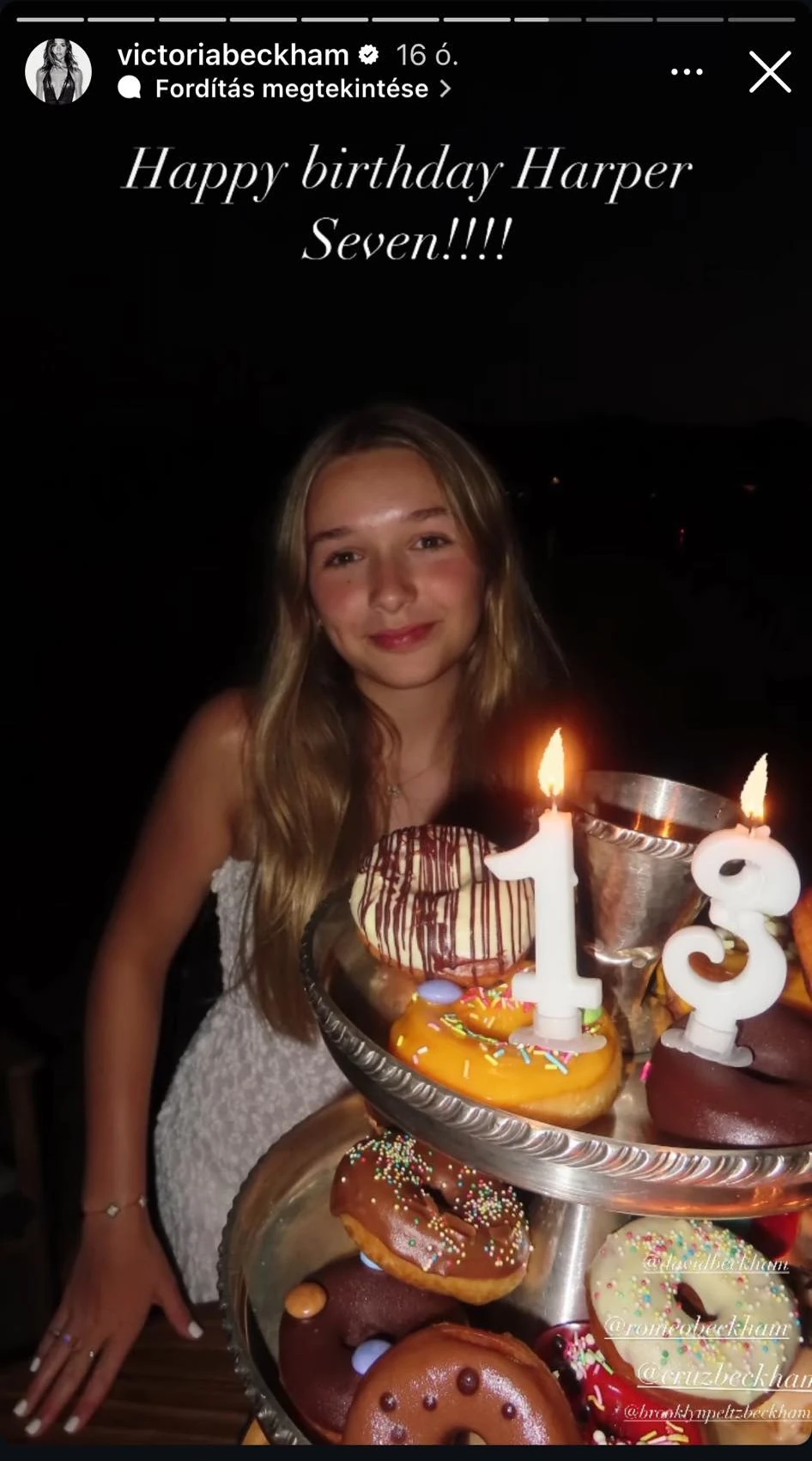 Hozzátette, hogy - az édesanyjára és édesapjára is tökéletes arányban hasonlító - Harper "kedves, nagylelkű és gyönyörű fiatal hölggyé vált, a legcsodálatosabb szívvel és a legcsodálatosabb mosollyal, akit mindannyian annyira szeretünk". A büszke szülők Instagram story-kat és videókat is feltöltöttek a születésnapos lányról, aki egyébként nincs jelen a közösségi médiában.