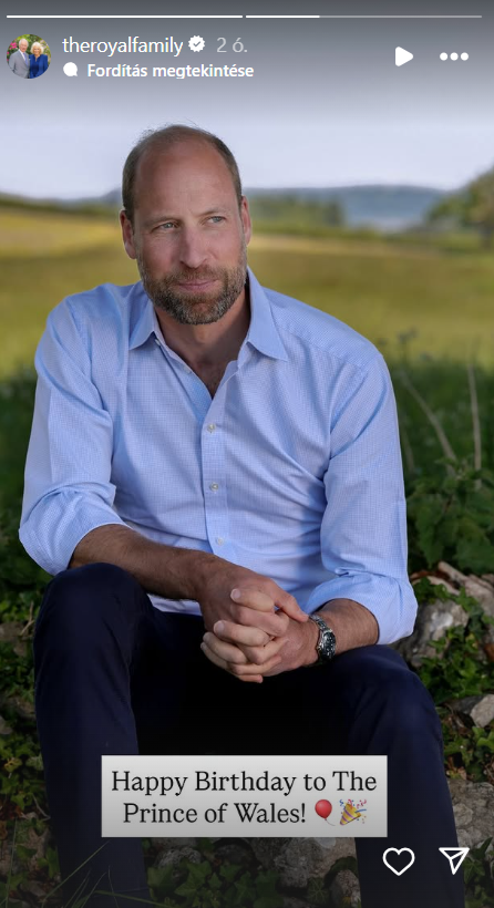Vilmos herceget édesapja, Károly király és Kamilla királyné is felköszöntették a királyi család hivatalos Instagram-oldalán. „Boldog születésnapot a walesi hercegnek!” - írták a kép mellé, ami a BBC szerint májusban, a Cornwall hercegségben tett látogatása során készült a trónörökösről.