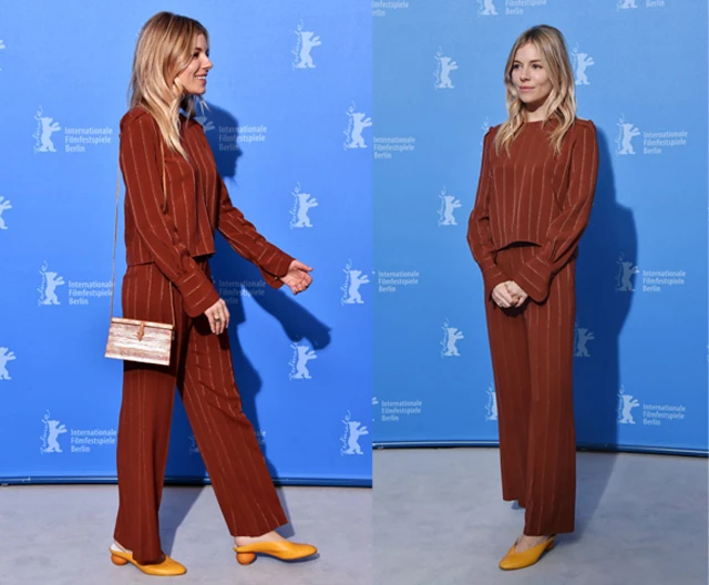 Az esti vörös szőnyeges premier előtt délután volt még egy sajtótájékoztató is, amelyen Sienna Miller egy nagyon stílusos barna nadrágos összeállításban jelent meg, sikkes sárga cipővel. Mit szólsz ehhez a szetthez?