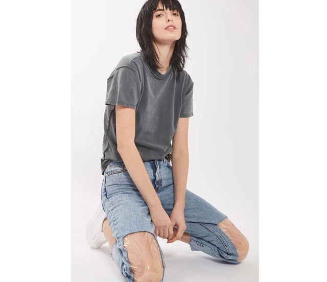 Az egész ügy azzal kezdődött, hogy a Mashable szerzője a szokásos félig sem komolyan vehető stílusában esett neki a Topshop egyik új termékének, a térdrésznél áttetsző, műanyag betéttel díszített kismama farmernek.