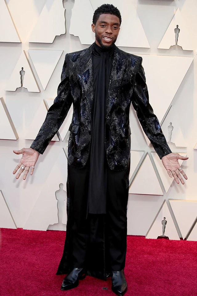 A film főhősét alakító Chadwick Boseman pedig egyike volt a legjobban öltözött férfiaknak, és igen, ő is ruhában érkezett. A Givenchy Haute Couture, hosszú, fekete kreációban papként is megállta volna a helyét, de az izgalmas, mintás zakó természetesen megoldotta ezt a problémát. A 41 éves Boseman a barátnőjével érkezett a gálára, és egy cseppet sem érezte magát kevésbé férfiasnak, mint öltönyös vagy ruhás társai.