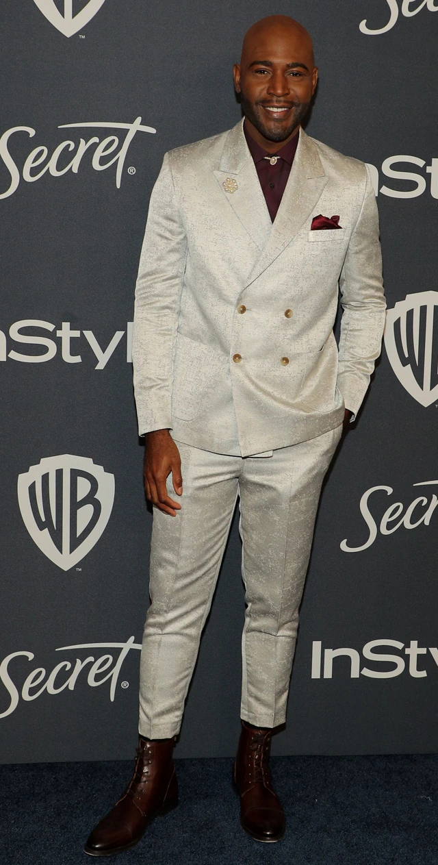 A műsorvezető, Karamo Brown is a szürke mellett döntött, amit barna bakanccsal tett vagánnyá.