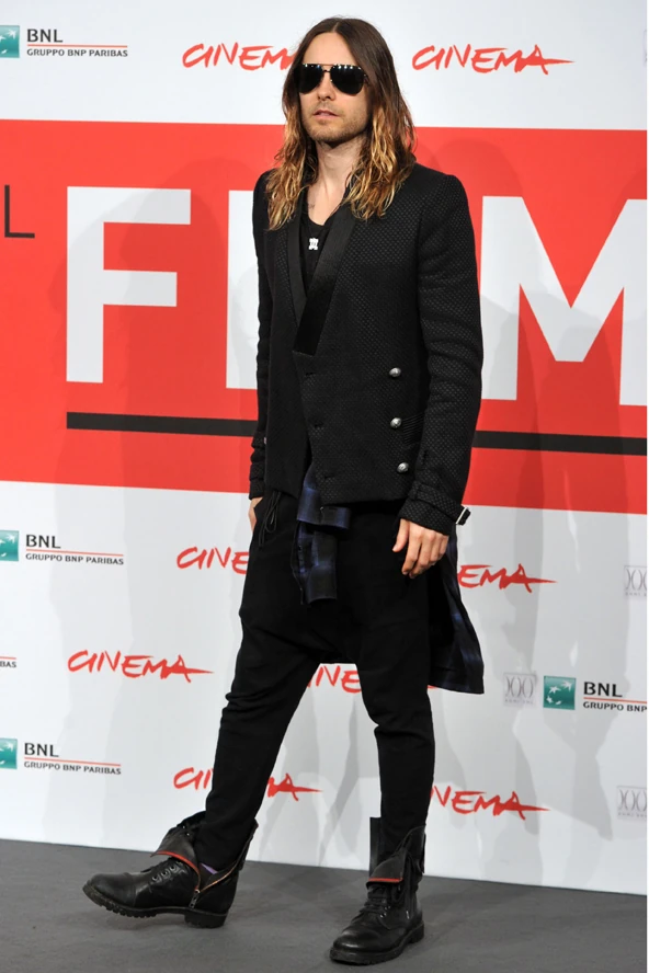 A 41 éves sztárt nem csak a 30 Seconds to Mars nevű roppant sikeres rockbanda frontembereként ismerjük, hanem több hollywoodi produkcióban is felbukkant. Ilyen például a Rekviem egy álomért, a Mr. Nobody, vagy a Nagy Sándor, a hódító, ahol Colin Farrell oldalán láthattuk. Nyitottságára ennek a szerepnek a megformálása is bizonyítékul szolgál, hiszen Nagy Sándor szeretőjét alakította a filmben. Egyszóval, Jared Leto nem retten vissza a botrányos szereplésektől. Ahogy a színpadon, a különböző hivatalos megjelenésekkor sem fogja vissza magát. Előszeretettel használ szemkontúr ceruzát, és védjegyének számít a szakadt, grunge-os stílus. A római filmfesztiválra is hasonló szettben érkezett: trottyos fekete nadrág, kibontott bakancs, derékra kötött kockás ing és kissé gót stílusú kabát, no és az igénytelenül szexi, csimbókos haj. Egy rocksztár megjelenésénél elengedhetetlen a napszemüveg viselése, úgyhogy Jared Leto sem mutatkozhatott anélkül. Te mit szólsz a zenész/színész stílushoz?