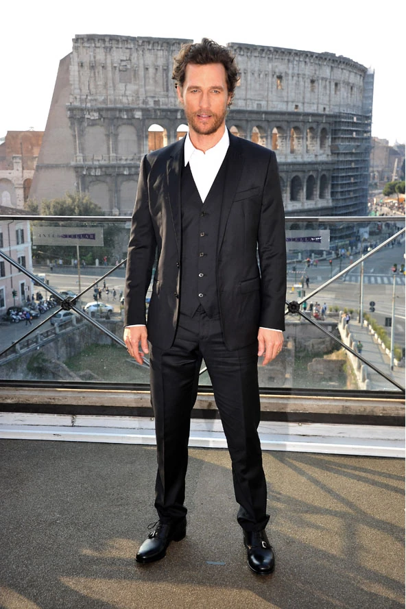 A 44 éves színész idén minden elképzelhető díjat bezsebelt a Mielőtt meghaltam filmben nyújtott alakításával, nem beszélve az összes zsarus sorozatot maga mögé utasító A törvény nevében első szériájáról. Itt azonban még mindig nem állt meg, és Hollywood jelenlegi első számú színészeként az év másik rendkívül jónak ígérkező, várva várt mozijában, a Csillagok közöttben is láthatjuk hamarosan. A film hivatalos premierjei zajlanak jelenleg a világ legnagyobb városaiban, és Matthew McConaughey most éppen Rómába utazott a produkciót népszerűsíteni. A színészt már számtalanszor láttuk a vörös szőnyegen, és tudjuk, hogy csodásan áll neki az öltöny, de az olasz fővárosban erre ismét emlékeztetett bennünket. Ez a fekete klasszikus összeállítás attól még ellenállhatatlanabb, hogy Matthew McConaughey nem visel nyakkendőt hozzá, így lesz igazán keresetlenül szexi. Sőt a Colosseum is igencsak jól áll neki, úgy véljük. Te mit gondolsz?