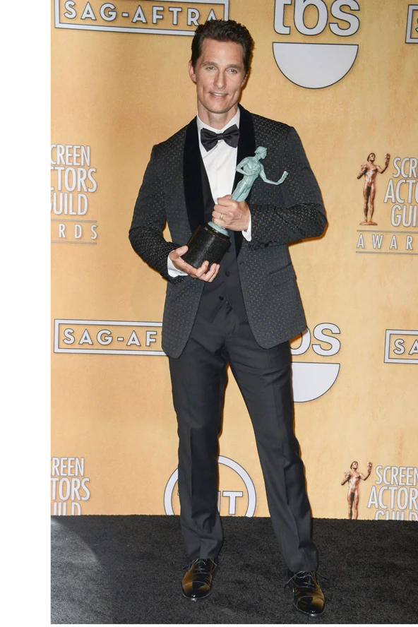 A 44 éves színész tehetségére a Tökéletlen idők nagysikerű 1993-as tini filmben figyeltek fel. A kisvárosi nagy vagányt alakító McConaughey karrierje egyből beindult és innentől kezdődően sorban jöttek a felkérések. Évekig a romantikus komédiák kedvelt férfi főszereplője volt, mint amilyen a Szeretném, ha szeretnél Jennifer Lopez oldalán, a Hogyan veszítsünk el egy pasit 10 nap alatt? Kate Hudsonnal, az Anyám nyakán Sarah Jessica Parkerrel, vagy a Bolondok aranya film is volt ugyancsak Kate Hudson mellett. Míg a komoly szakmai elismerések várattak egy ideig magukra, úgy tűnik, végre Matthew McConaughey olyannyira beérett, hogy akár egy Oscart is hazavihet nem sokára. A Mielőtt meghaltam című filmje összesen hat aranyszoborra is esélyes, köztük a legjobb férfi főszereplőnek járó díjra. A Golden Globe-on Matthew McConaughey már bizonyított, és most a SAG gáláról sem távozott üres kézzel. A színész amellett, hogy elkötelezett férj, három gyerek édesapja is, bármennyire is rosszfiús külseje mást sugallna. A tegnapi gálára is elkísérte brazil modell felesége, Camila Alves, ahol a színész egy elegáns Dolce & Gabbana öltönyben jelent meg. Nos, te mennyire vagy oda egy tízes skálán a sármos Matthew McConaugheyért?