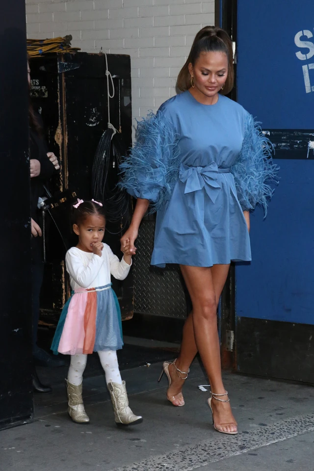 Chrissy Teigen a napokban a Today Show-nak volt a vendége, és a forgatásra is elkísérte őt Luna. A szépséges közösségi média sztár természetesen lehengerlően nézett ki, ahogy hosszú lábait megcsodálhattuk ebben a csinos, kék miniruhában. A kis Luna is bűbájos volt a szivárványszínű tüllszoknyájában, ő azonban annyira nem élvezte, hogy fotózgatják.