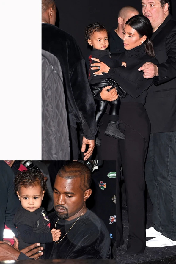 A kis North West is tiszteletét tette a bemutatón Kim Kardashian ölében, és nem mehetünk el szó nélkül a szettje mellett. Mama, papa és Nori tetőtől talpig feketében érkeztek az Alexander Wang által tervezett kollekció bemutatójára. Sőt, Kanye West erre az alkalomra külön frizurát is varázsolt a feje tetejére, nem beszélve a bőr szettről, amiben az immár modell North West villog. Kik ők, ha nem a legstílusosabb család a párizsi divathéten?