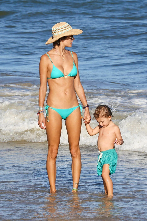 A brazil szépség kétgyerekes anyukaként is elképesztően dögös, ezt támasztja alá, hogy a tavaly ő viselte a Victoria's Secret többmilliós, drágakövekkel kirakott Wonder Bra fantázianevű melltartóját. Nos, most mondhatnátok, hogy persze, csak a Photoshop, a smink és a szemfényvesztés, de ezt a tengerparti fotót egy hajszálnyi retusálás sem érte. Alessandra Ambrosio 33 évesen, két gyerek után is (itt kisfiával, a szinte 3 éves Noah-val napfürdőzik) ilyen elképesztő formában van. Ha ez nem motiváció az edzéshez, akkor mi?