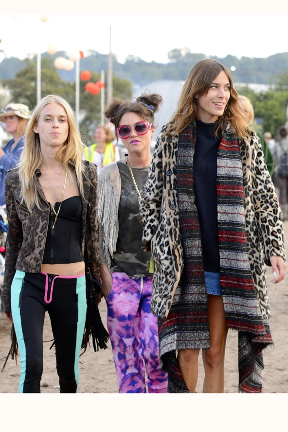 A Glastonbury fesztiválról az egyik kedvenc összeállításunk tőle egy ezüst, rövid szárú overall volt, viszont a hűvösebb napokon is remekül rétegezett. Most például a meglehetősen egyedi szettben megjelenő barátaival érkezett a fesztivál helyszínére. Alexa Chung farmer minijét fekete pulcsival és ezzel a vagány ponchóval viselte, de szettjét leopárdmintás bundájával tetőzte. Stíluskeverés mesterfokon! Erősen kételkedünk benne, hogy nálunk szükséged lenne ilyen meleg felsőrétegekre, de ha mégis, akkor ne félj kicsit megőrülni, és aggass mindent magadra a csajokhoz hasonlóan. Neked hogy tetszik Alexa Chung és barátnőinek összeállítása?
