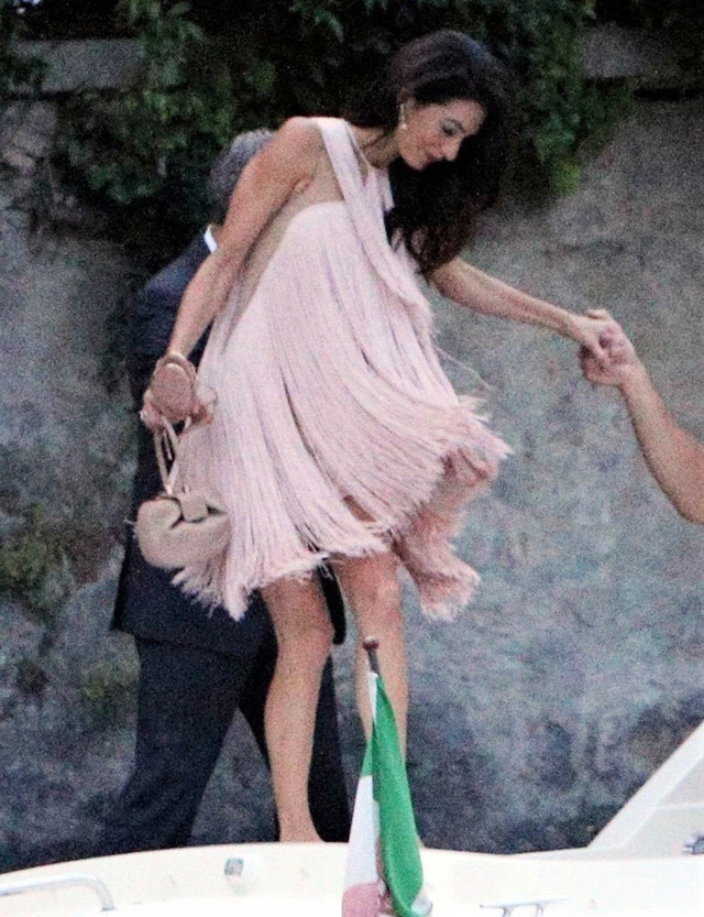A páros szokás szerint a Comói-tónál lévő villájukban múlatja az időd, olyan sztárbarátaik társaságában, mint Stella McCartney. Most is éppen együtt vacsoráztak, amihez mindenki kicsípte magát, Amal Clooney különösen, aki éppen Stella McCartney egyik kreációját viselte a közös programon. A húszas éveket idéző óriási rojtos ruha nagyon bohém és sikkes, és valójában éppen az ilyen termetű nőkön áll szuperül egy ilyen ruha, mint Amal. Ugyanakkor meg kicsit viccesek is ezek az eltúlzottan hosszú rojtok, nekünk egyből egy afgán agár versenyszőrzete jutott róla az eszünkbe.