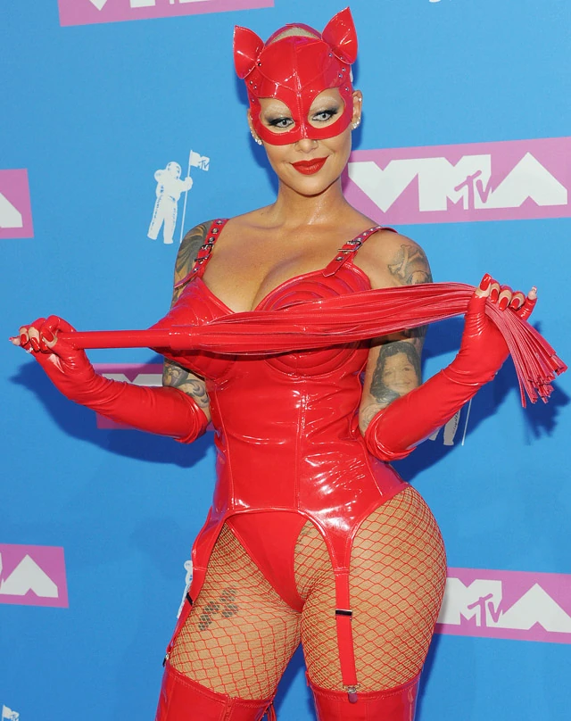 Persze az tőle egyáltalán nem szokatlan, hogy mutogatja magát, vagy polgárpukkasztóan viselkedik, ez a szett azonban minden határon túl megy. Fogalmunk sincs, mi járhatott Amber fejében, amikor eldöntötte, hogy latex bugyiban, maszkban, harisnyakötőben, ostorral a kezében vonul végig a vörös szőnyegen.