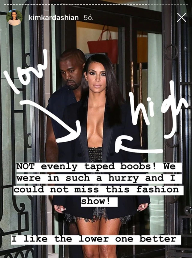 Véletlenül sem szeretnénk dönteni a kérdésben, viszont az kétségkívül nagyon érdekes, néha elrettentő, néha kifejezetten szórakoztató, hogy Kim Kardashian, vagy akárki a bajtársnői közül mi mindent bevetnek a kívánt cél elérése érdekében. Azt például eddig is tudtuk, hogy még az ő méretes keblei sem képesek fittyet hányni a gravitációra, így aztán sejtettük, sőt a közösségimédia-sztár elbeszéléseiből tudjuk is, hogy a rizikós, melltartó nélkül viselt szettjeinek rejtélye, hogy a melleit kellőképpen felragasztják, hogy tökéletesen mutasson a ruhákban.