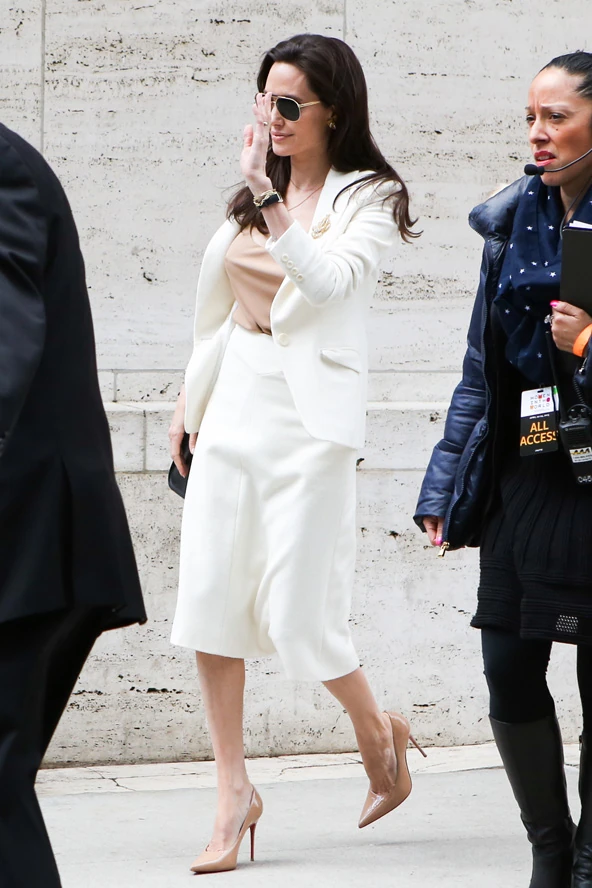 Az ENSZ nagyköveteként a Biztonsági Bizottság New York-i csúcstalálkozóján vett részt a hétvégén, ahol Közel-Kelet és a szíriai krízis volt terítéken. A 39 éves színésznő inspiráló beszédet tartott a szíriai menekültek segítésének fontosságáról. A találkozóra Angelina Jolie a tőle megszokott visszafogott eleganciával érkezett, ebben a fehér ceruzaszoknyás kiskosztümben igencsak csinos volt és kellőképpen meggyőző, nem gondolod?