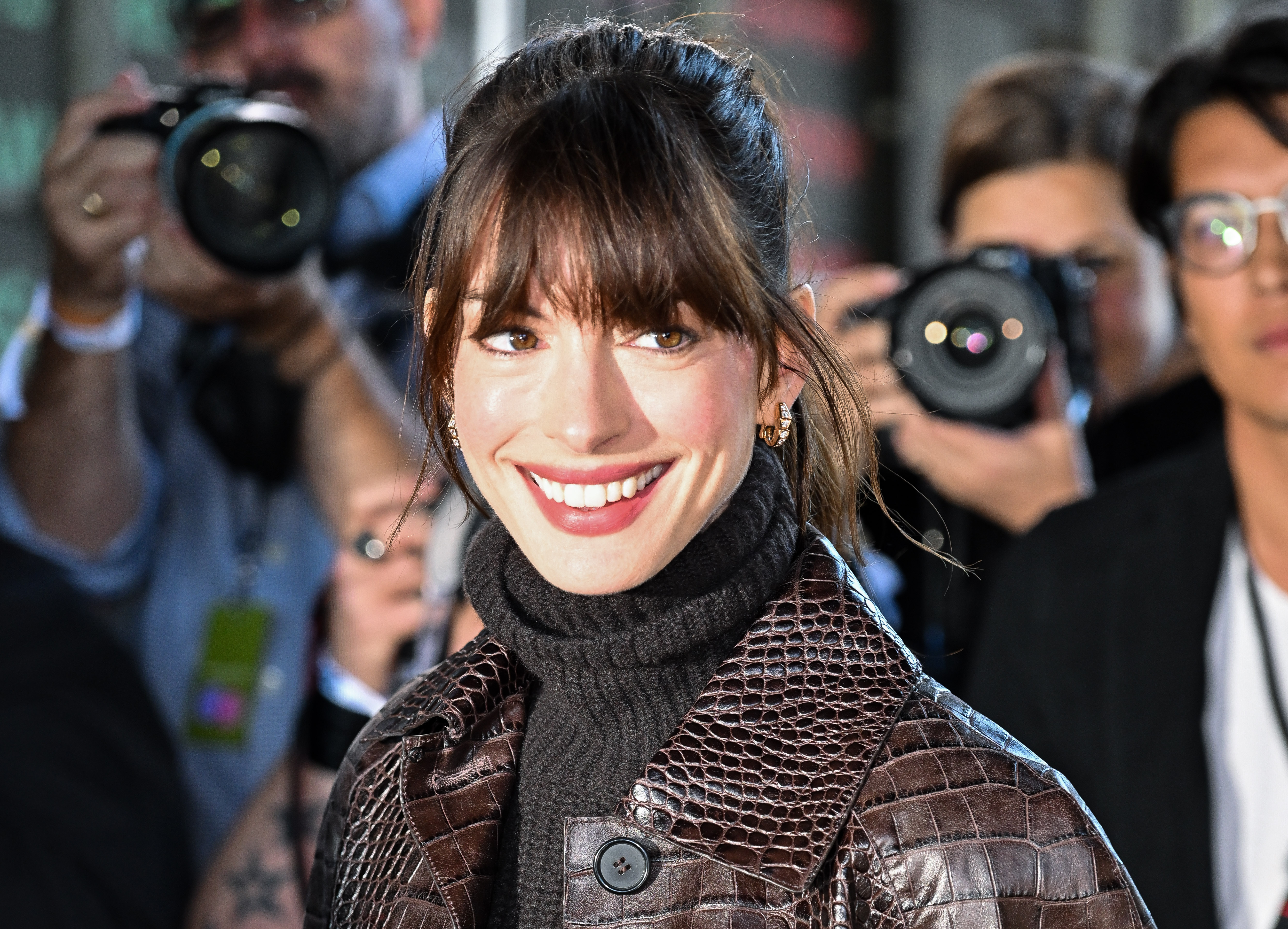 Ahogy filmbéli karaktere is Az ördög Pradát visel zárójelenetében teszi, Hathaway is fekete garbót viselt barna bőrkabáttal, igaz az Andy kopott dzsekijét a színésznő egy hosszú, fényes krokodilbőr-mintás darabra cserélte, és a farmernadrág és hasított csizma-kombó helyett miniszoknyát és fekete magas sarkút viselt a sikkes összhatás érdekében. A borzos frufru és a lófarok pedig egy az egyben Andy Sachs-et kiált!
