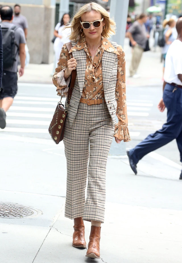 Diane Kruger egy nagyon vagány, a hetvenes éveket idéző szerelésben érkezett a beszélgetésre. Imádtuk egy a laza outfitet, aminek szinte minden elemét a Michael Kors márkától választotta a sztár. Nem fogott mellé, ez biztos!