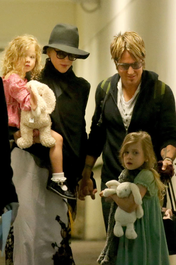 Az ausztrál színésznő a sok szereplés ellenére nem a legközvetlenebb híresség. Férjével, a countrysztár Keith Urbannel mindent megtesznek, hogy a családjukat elrejtsék a kíváncsiskodó sajtó elől. Talán emlékeztek rá, hogy két éve Nicole Kidman egy álomszép fotón szerepelt az ausztrál Vogue címlapján. Ennek különlegessége volt, hogy kislánya, az akkor másfél éves Faith Margaretet tartotta a kezében. Nos, azóta nem is nagyon láttuk a színésznő és a zenész két közös csemetéit. Most azonban Sydney repülőterén elcsípték az egész családot. Hihetetlen mennyire hasonlítanak a lányok, a kisebb Faith Margaret, akit a színésznő tart a karján, különösen. Persze, Sunday Rose is csodaszép kislány. Mi imádjuk ezt az elcsent családi pillanatot, reméljük, hogy a Kidman-Urban família nyugalmát nem nagyon zavarják majd a lesifotósok, de ezért a képért hálásak vagyunk, annyira cuki, nem?