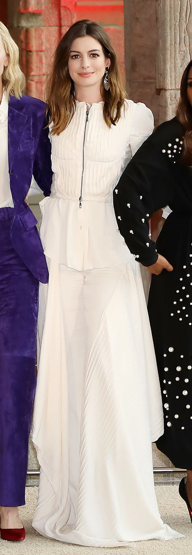 Anne Hathaway fehérbe borult, ez az izgalmas elsőre földig érő ruhának tűnő összeállítás valójában egy nadrágos szett: