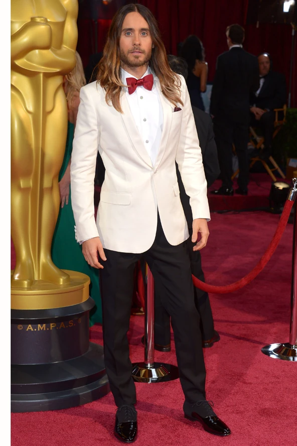 A 30 Seconds to Mars rendkívül szexi frontembere nem retten vissza a meleg szerepek megformálásától, és hál' Istennek, hiszen a transzvesztita Rayon eljátszásáért meg is kapta idén az aranyszobrot. A 42 éves színészt édesanyja kísérte el a díjátadó gálára, melyre a sztár ebben az igencsak remek fekete-fehér szmokingos összeállításban érkezett. A piros csokornyakkendőtől pedig egyenesen elolvadunk. Szerinted is az este legjobban öltözött pasija volt az ombre loknikkal hódító Jared Leto?
