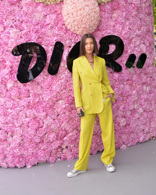 Persze azt eddig is tudtuk, hogy rajta gyakorlatilag minden jól áll, álmainkban sem gondoltuk volna, hogy ezt a két ruhadarabot meri kombinálni. Bella egy citromsárga Dior öltöny választott bő nadrággal, és önmagát meghazudtolva nem tűsarkút, hanem egy laza tornacipőt viselt a szett mellé. Ez ugye szokatlan választás, hiszen ha már egy nő férfias ruhát vesz fel, akkor általában azt szoktuk javasolni, hogy ellensúlyozza a szettet valamilyen nőies kiegészítővel, ami a legtöbb esetben ugye egy magas sarkú lehet.