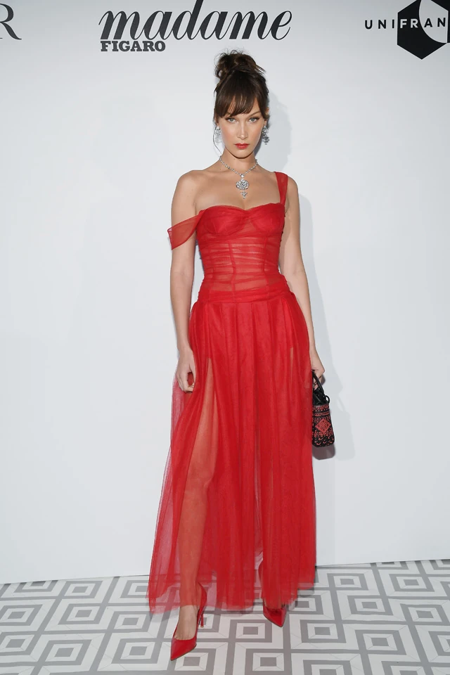 Bella Hadid piros estélyijében akár a Moulin Rouge-ban is szerepelhetne