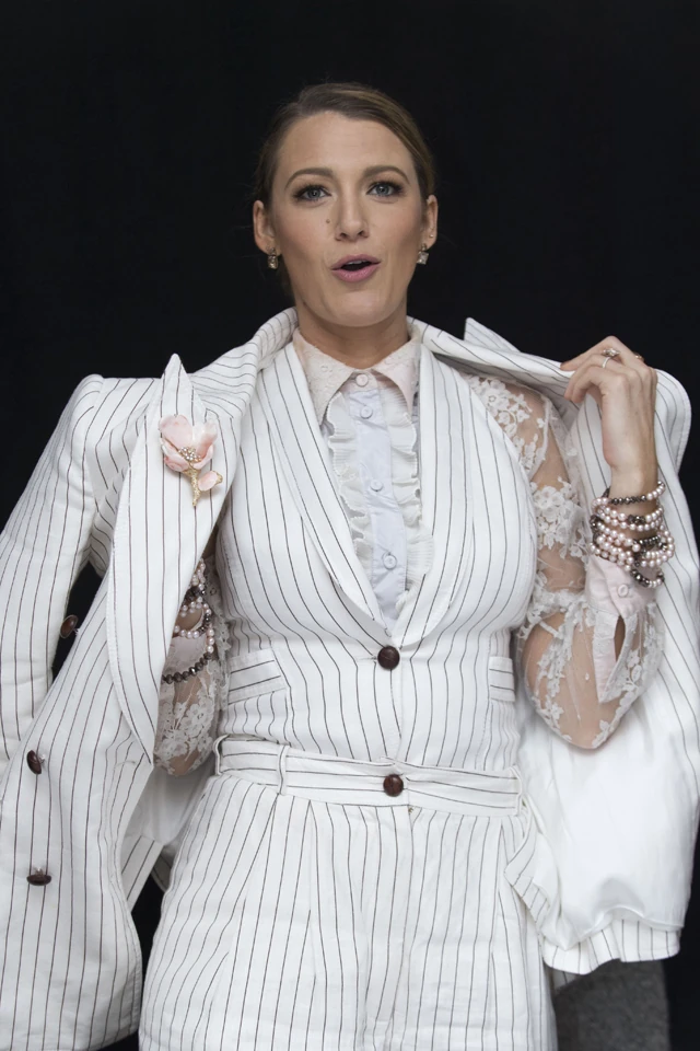 A napokban még két szuper szettet láthattunk tőle, az egyik csíkos mellényes öltöny, amit fehér csipkeblúzzal viselt alatta. Meglehetősen fura összeállítás, de mi tagadás, Blake Lively-nak ez is szuperül áll.