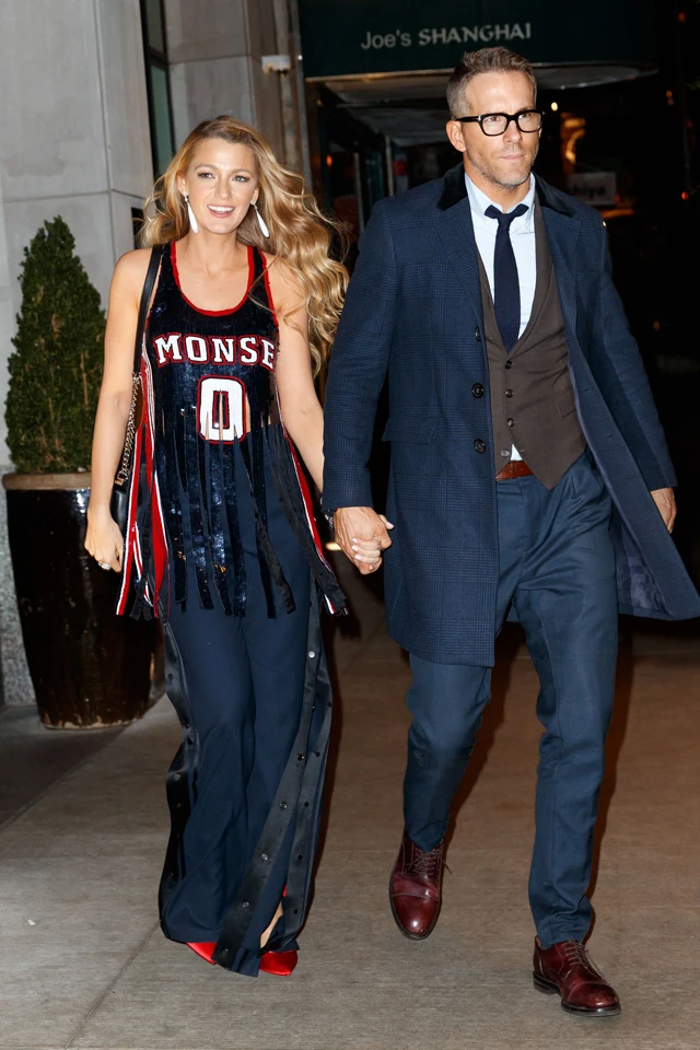 Az estét pedig egy sportmezre hajazó Monse összeállításban végezte, és még sármos férjét, Ryan Reynoldsot is megpillanthattuk az oldalán: