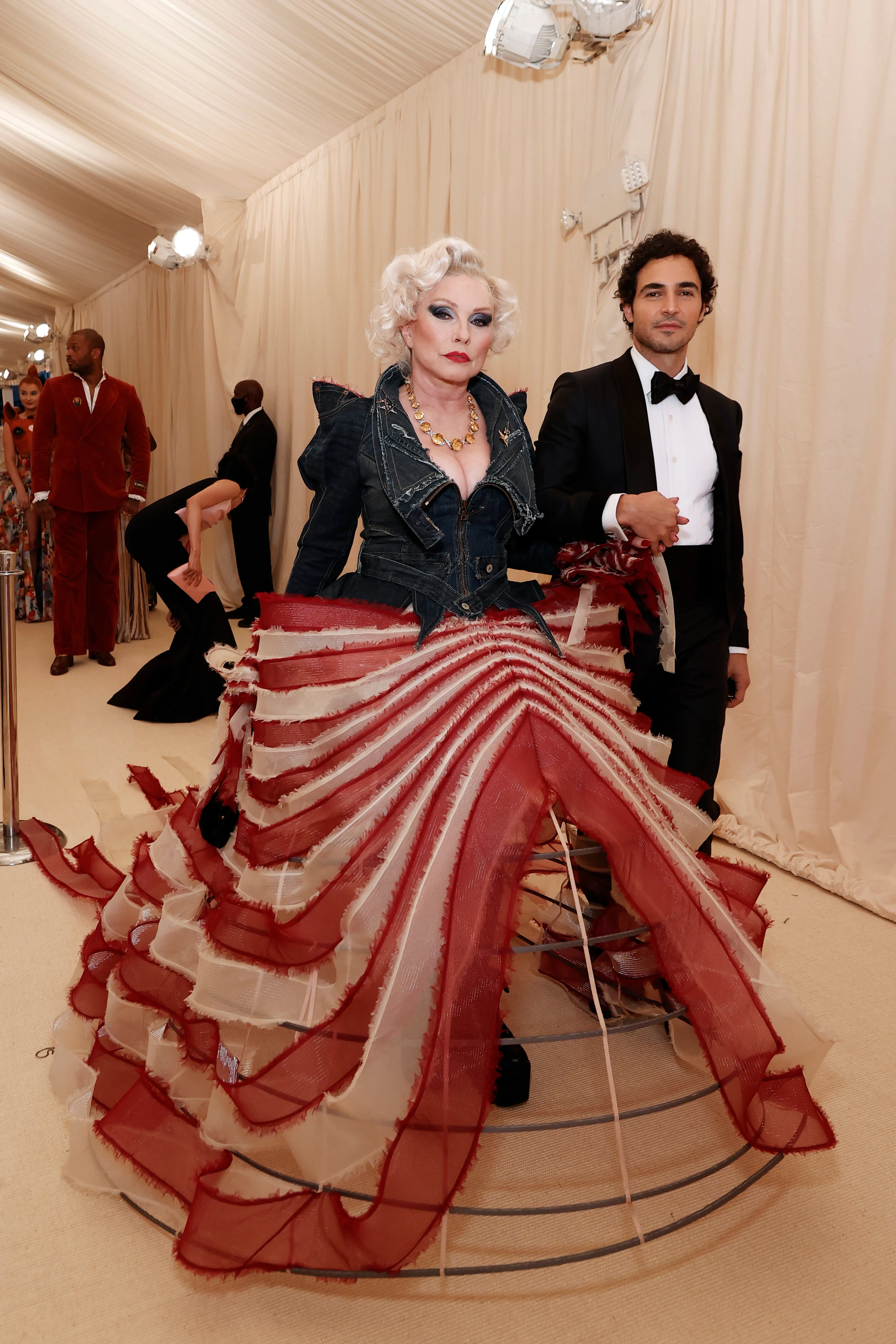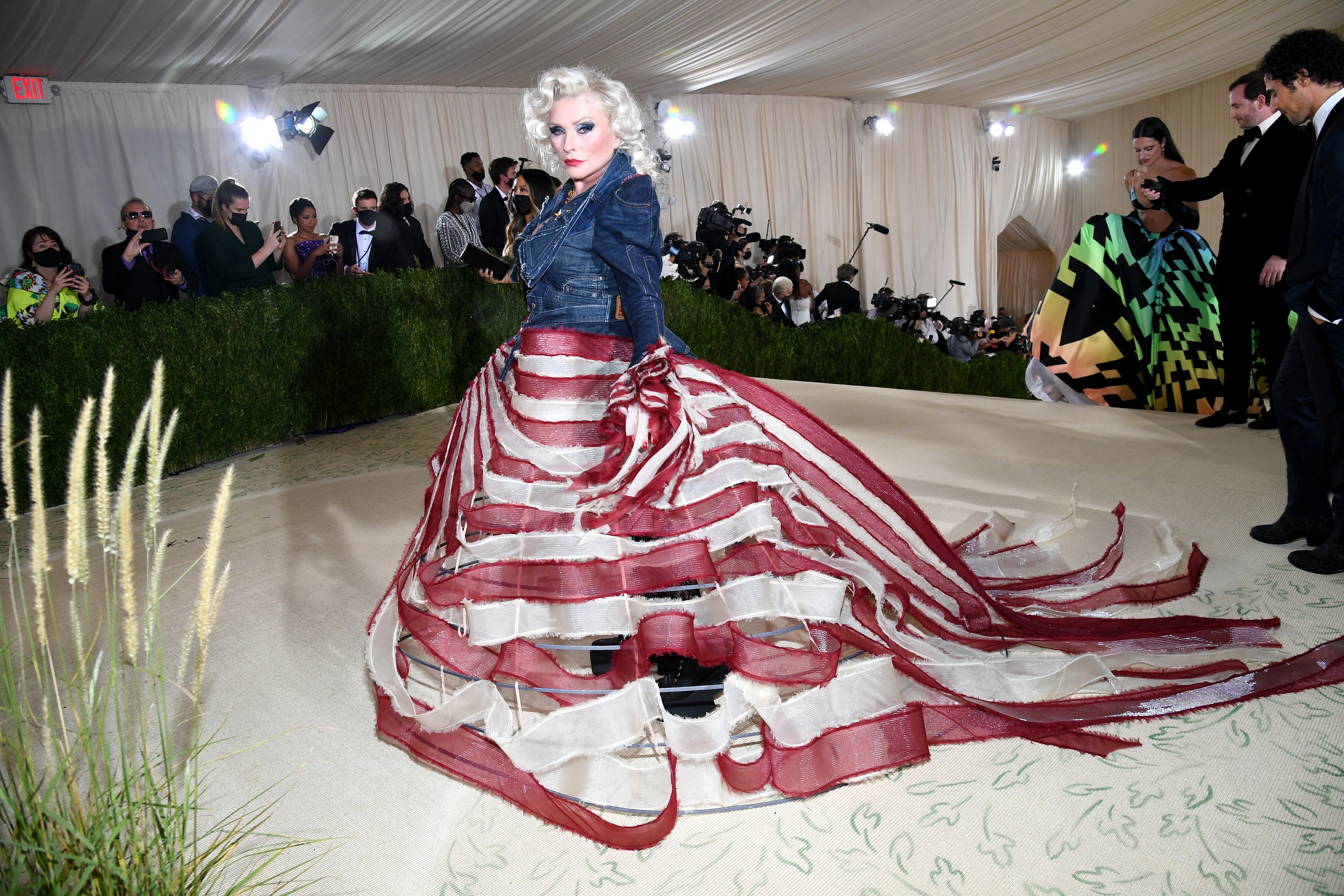 Nos, a legendás énekesnő, Blondie nem bízta a véletlenre a dolgot idén, és az amerikai divat nagy múltját szó szerint értelmezték Zac Posen tervezővel, és az énekesnőt egy tépett amerikai zászlót idéző báliruhába öltöztették, aminek a felsőrésze egy farmerdzseki volt.